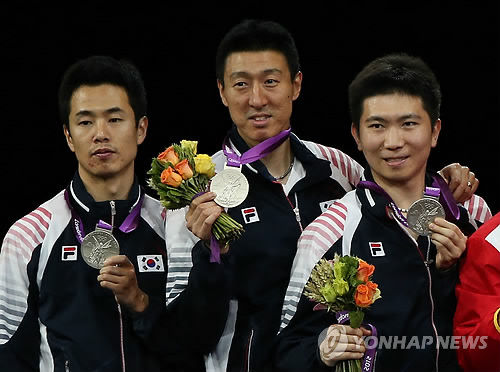 주세혁(세계랭킹 10위·삼성생명), 오상은(11위·KDB대우증권), 유승민(17위·삼성생명)은 8일(현지시간) 열린 대회 12일째 탁구 남자 단체전 결승전에서 중국에 0-3으로 져 은메달을 땄다.