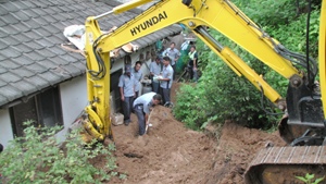 이날 오전 7시부터 긴급응급복구 봉사활동에 나선, 강태성 의용소방대장을 비롯한 대원 50여명은 오후 2시까지 중장비를 동원, 주택으로 쏟아져 내린 토사를 마대자루에 담아 무너진 축대에 쌓아 올렸으며, 추가 피해를 막기 위해 축대에 비닐을 덮어 주는 등 구슬땀을 흘렸다.