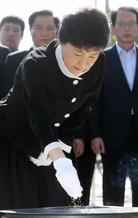 이에 앞서 검은색 정장 차림으로 현충원을 찾은 박 후보는 황우여 대표를 비롯한 당 지도부와 함께 현충탑 앞에서 참배한 데 이어 이승만ㆍ박정희ㆍ김대중 전 대통령의 묘역도 차례로 찾았다.
