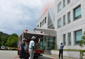 청사 화재 발생을 가정한 이날 훈련은 화재발생 시 직원 대피, 주요문서 반출, 부상자 응급구조 및 응급처치를 실시하고 자위소방대에서 산불진화 방제차, 소화기, 등짐펌프 등을 이용하여 화재를 진화하였으며, 이는 위기 상황에 대한 대처능력을 평시 숙달연습하기 위한 훈련이다.