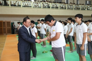 이 시장은 이날 550여명의 학생들에게 ‘큰 꿈을 꾸고 미래를 준비하라’는 주제로 40여분간 자신의 학창생활을 소개하고 큰 꿈과 미래를 향한 목표를 정하여 학업에 매진해 줄 것을 당부했다. 또 지난 런던올림픽에서 우리나라 선수단이 금메달 13개를 따내며 종합 5위를 한 것은 선수들이 피와 땀으로 일구어낸 성과로서 목표를 이루고 말겠다는 강한 의지와 불굴의 투지가 있었기 때문이라고 설명하고 미래를 위해 꿈을 꾸고 목표를 설정하는 것은 청소년기에 있어 매우 중요하다고 강조했다. 특히 막연하게 공부하지 말고 멀리 내다보고 한걸음씩 전진해 나갈 것을 주문했다. 이외에도 이 시장은 공부와 직업, 건강, 외국어 공부, 독서의 중요성 등을 강조했으며, 충주시에서도 학생들이 좀 더 좋은 환경에서 공부하고 꿈을 키워갈 수 있도록 각별한 관심을 기울이고 있다고 밝히고 앞으로도 다양하고 질 놓은 프로그램을 지원해나갈 것임을 학생들에게 약속했다. <충주/박일>