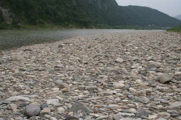 영월, 영춘, 가곡 향산과 가대를 지나온 남한강이 여울목에서 급격하게 강폭을 줄이면서 강가로 자갈밭과 갈대밭을 연이어 펼쳐놓고 있다.