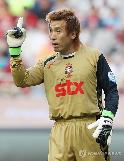 7일 오후 서울 월드컵경기장에서 열린 K리그 2012 FC서울과 경남FC의 경기에서 경남FC 김병지가 600경기 선발 출전해 경기를 하고 있다.