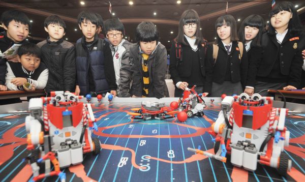 ‘2012 청주 아동·청소년 디지털 직업 박람회’가 1일 청주시 청소년수련관에서 ‘교육문화도시에서 나의미래를 디자인하다’란 주제로 개막됐다. 이날 행사장을 찾은 학생들이 로봇 연구원 등 다양한 직업 체험을 하고 있다. <사진/임동빈>