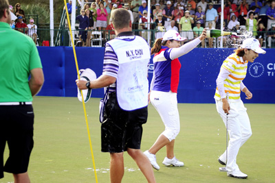 마지막 18번 홀(파4)에서 약 5m 거리의 버디 퍼트가 홀컵을 살짝 돌아 나왔지만 최나연이 우승하는 데는 아무런 문제가 없었다.
