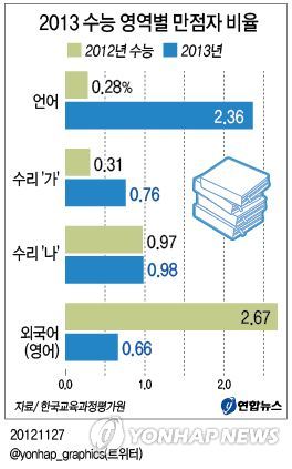●외국어 어려워져 = 빈칸 추론 문제가 어려웠던 올해 외국어 영역은 만점자가 전체의 0.66%인 4041명에 그쳤다.