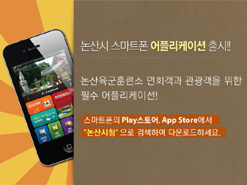 이에 따라 스마트폰 스토어에서 ‘논산’, ‘논산시청’, ‘면회’, ‘훈련소’, ‘관광’ 등으로 검색한 후 ‘스마트논산’ 어플리케이션을 다운 받으면 논산8경, 추천관광코스 등 관광정보와 음식점, 숙박업소 등 다양한 정보를 제공받을 수 있게 됐다.