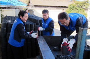 | 괴산수력발전소가 어려운 이웃들에 연탄을 전달하고 있다. |