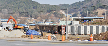 아파트 공사가 한창 진행되고 있는 청주 율량지구와 용정지구를 사이에 두고 건너편에서도 공사가 진행되고 있다.