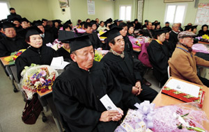 이날 졸업식은 10개월의 교육과정을 이수한 44명의 노인들에게 졸업증서를 전달하는 등 축하 분위기 속에서 치러졌다.
