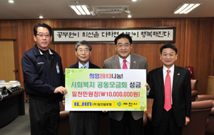 (주)일진글로벌 제천공장 임한욱 상임고문이 지난 17일 제천시청을 방문해 ‘희망2013나눔! 사회복지공동모금회’에 1000만 원을 기탁했다.