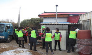 농협중앙회 서산시지부 직원들로 구성된 행복나눔회 회원들이 불우이웃에게 사랑의 연탄을 배달하고 있다. 이들은 700만원을 모아 불우이웃 7명을 선정해 각각 300장씩 2000장을 배달했다. <서산/장인철>