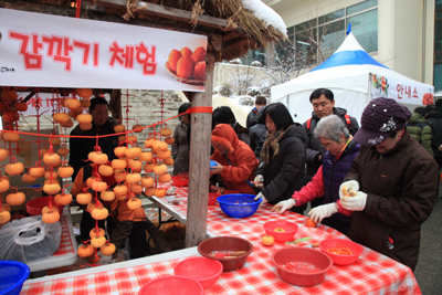 또 야외 체험장에서는 감 깎아 매달기, 길거리 매직 공연, 마네킹 공연, 한지체험, 곶감따기 체험 등 다양한 체험프로그램이 관광객들에게 큰 인기를 끌었다.