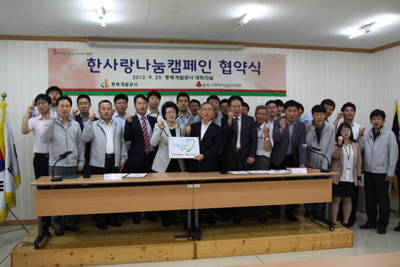 올 9월 사회복지공동모금회 충북지회와 업무협약(MOU)를 통해 일회성 봉사활동이 아닌 연중 끊임없는 사랑실천을 실천하고 있다.