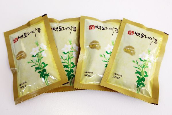 특히 수분 함량이 많은 으뜸 백도라지의 특성을 살려 개발한 도라지즙은 특유의 아리고 쓴맛을 없앤 것이 특징이다.