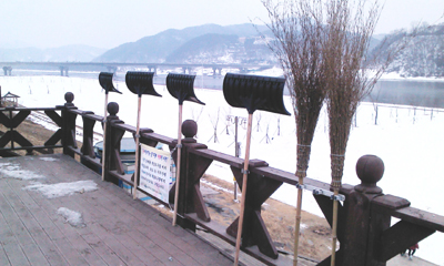 시민참여용 제설도구(죽가래, 대빗자루)는 시민과 공주시 직원들이 기증한 것으로, 시는 금강변 데크길 2.3㎞ 구간에 100m간격으로 26개소에 △죽가래 60개 △대빗자루 60개를 우선 설치했으며, 시민들의 호응에 따라 점차 확대할 계획이다.