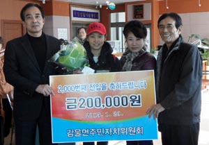 이번 2000번 째 주인공이 된 사람은 제주시 연동에서 이사 온 송남수(43)씨 가족으로 3명의 자녀와 함께 감물면 유창마을에 안착하게 됐다.