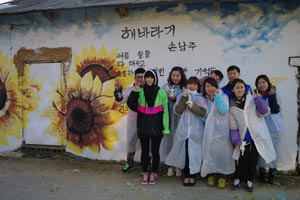 후기리 마을에서 노후된 벽면에 산뜻한 벽화를 그려 마을 분위기를 탈바꿈시켰다.