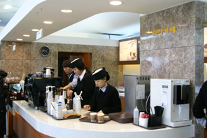 내포 충남도청 신청사내에 가장 인기를 끌고 있는 본관 1층에 위치한 ‘희망카페’. 장애인들이 만든 원두커피와 쿠키, 빵 등을 판매하고 있다.