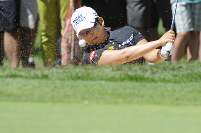 하지만 이후 5번홀과 12번홀(이상 파4)에서 보기를 내며 타수를 줄이지 못했고, 결국 12번홀에서 버디 퍼트에 성공한 리디아 고에게 공동 선두 자리를 다시 내줬다.