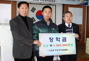 괴산군 사리면 주민자치위원회는 20일 장학금을 전달하고 주민화합을 위한 대보름 행사를 가졌다.