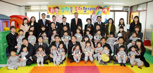 충북도교육청은 4일 청사 내 직장보육시설인 ‘아이사랑어린이집’ 입학식을 가졌다. 입학식에는 재원아동 9명을 포함해 22명의 아동이 함께했다. 이기용 충북도교육감은 입학식에서 “아이들의 건전한 성장을 위해 양질의 보육서비스 제공을 약속하고 장차 훌륭하게 자라길 바란다”고 말하며 신입 아동들의 가방을 직접 전달했다.<오상우>