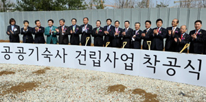 18일 서울 강서구 내발산동 '희망둥지 대학생 공공기숙사' 1호 착공식에 참석한 박원순 시장 등이 시삽을 한 뒤 박수를 치고 있다.