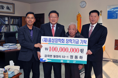 하지만 정씨는 "얼마 되지 않는 돈을 기탁하면서 생색을 내고 싶지 않다"고 극구 사양한 뒤 "나는 살만큼 살았으니 이 돈을 음성군의 훌륭한 인재육성을 위해 사용해 달라"고 당부했다.