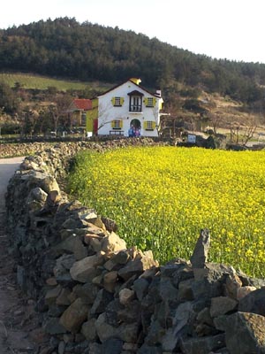 투박한 질감의 당리 돌담길은 계절마다 화려한 원색으로 단장한다. 밭이랑 새순의 떨림, 구름 사이로 내리쬐는 봄 햇살, 노란 유채꽃과 푸른 청보리밭 언덕에서 만나는 봄 빛깔은 화려한 꽃밭보다 향기롭고 곱다.