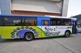 청산도 관광지 순환버스. 문화관광해설사와 함께 청산도 한바퀴를 도는데 2시간 30분이 걸린다