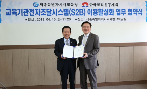 세종시교육청과 한국교직원공제회는 16일 교육기관 전자조달시스템인 S2B(학교장터) 이용에 관한 업무협약을 체결했다고 밝혔다.