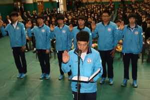 이기용 충북도교육감은 창단식에서 “양청고 배구부 창단을 통해 선진형 학생 선수를 육성하고 지역사회 초·중학교 꿈나무 선수들에게 보다 넓은 기회 제공을 기대한다”고 말했다. <오상우>