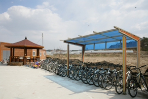 마을을 찾으면 제일 먼저 체험관 2층에서 신나게 도는 오색 바람개비와 마당 한 편에 가지런히 줄 맞춰 서 있는 자전거를 만난다.