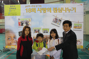 동양일보와 CJB청주방송, 월드비전 충북지부가 공동 주최한 18회 ‘사랑의 점심나누기 순회 모금행사’가 29일 오후 2시 충주시 호암체육관에서 열렸다.