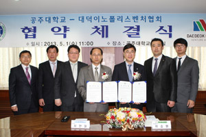 공주대(총장 서만철)는 1일 오전 11시 대학본부 2층 소회의실에서 서만철 총장과 이승완 대덕이노폴리스벤처협회장 등, 양 기관 관계자가 참석한 가운데 협력 체결식을 가졌다.