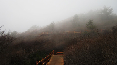 이 길은 마치 대청처럼 계단을 이용하지 않고, 나무 갑판(데크)을 이용해 억불산 정상까지 오를 수 있게 돼 있다.