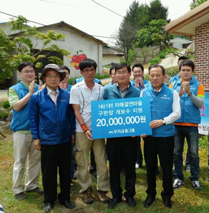 우리금융지주(회장 이팔성)가 14일 1사1촌 자매결연 마을인 충주시 주덕읍 삼방마을에 마을 구판장 개보수비 2000만원을 지원했다.