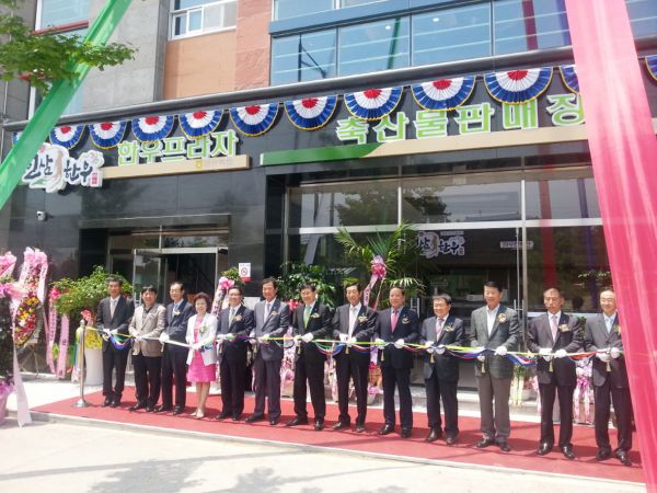 23일 금산읍 아인리 646-4 금산축협한우프라자 준공식에서 관계자들이 테이프 커팅을 하고 있다.
