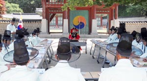 성 면장은 현감복, 면사무소 팀장들과 마을 이장들은 옥색의 양반복을 입고 붓펜과 한지 메모지에 전통차를 마시며 회의를 진행했다.