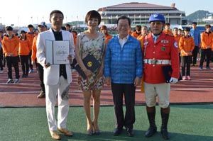 9일 충주시는 K리그 첼린지 충주험멜의 홈경기에 앞서 충주종합운동장에서 진행된 충북도민체전 결단식에서 김륜희씨를 충주사과 홍보대사로 위촉했다.