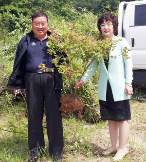 김 대표는 20일 지난 3월 개교한 감물면 오성중에 10년생 미선나무 300주(600만원 상당)를 기증했다.