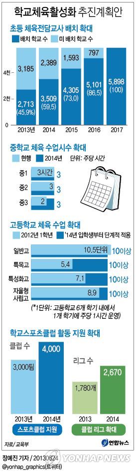 서남수 교육부 장관은 24일 세종로 정부서울청사 브리핑실에서 이 같은 내용을 담은 '학교체육활성화 추진계획'을 발표했다.