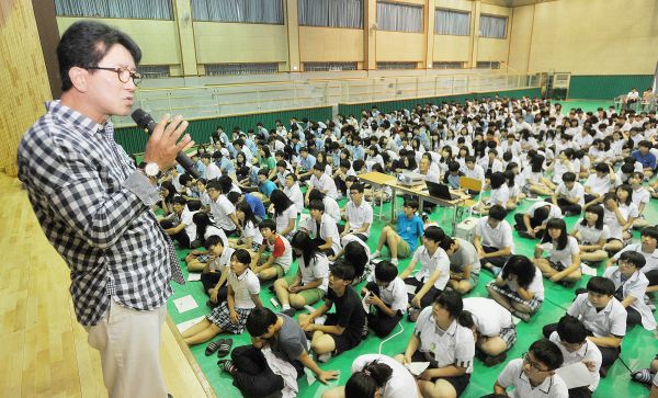 김 이사장은 내수중 전교생을 대상으로 한 이번 강연에서 2조원 신화를 이룬 성공담과 자신의 가치를 높일 수 있는 방법 등을 설명했다.