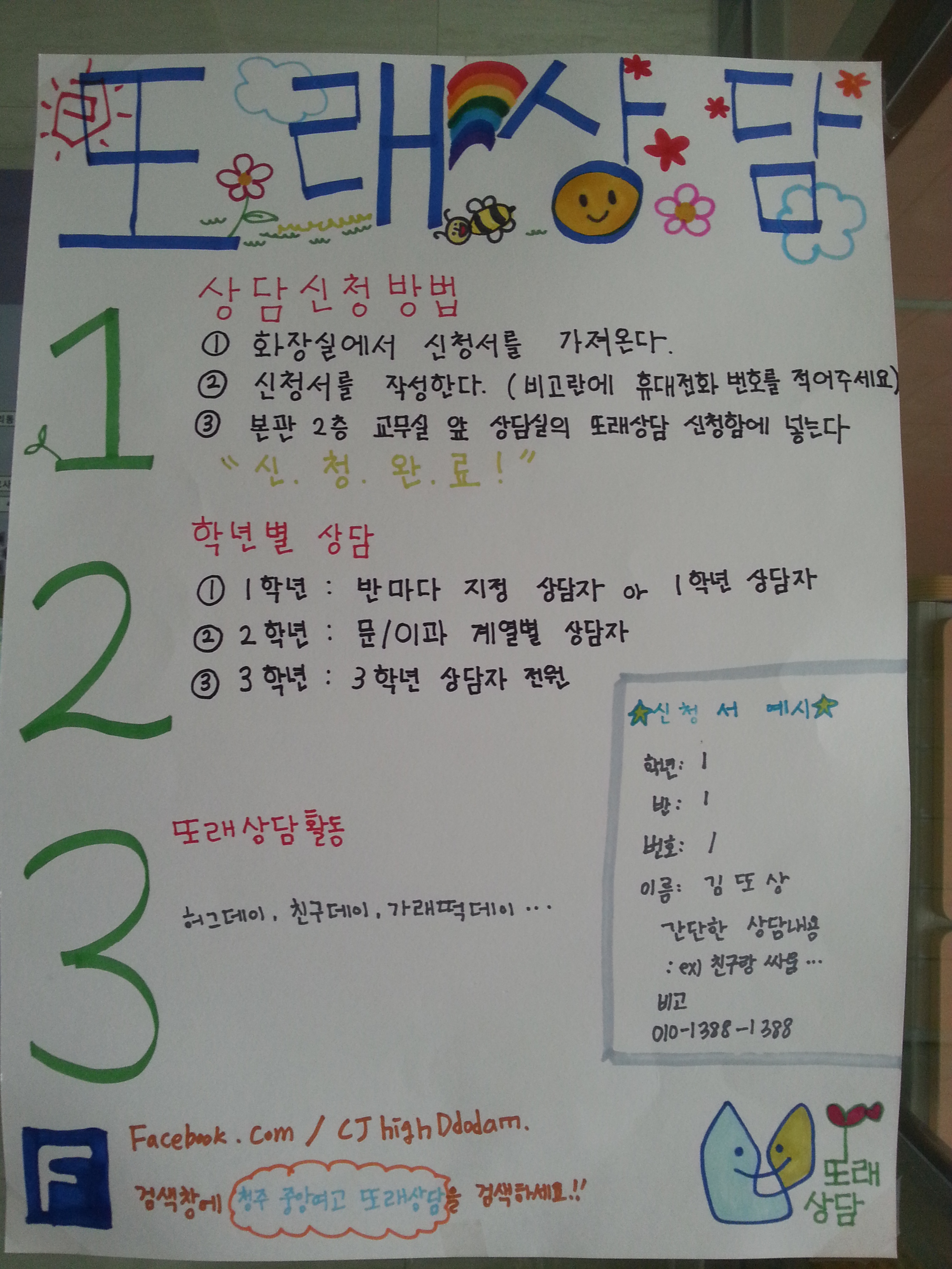 지난 3~4월 또래상담자를 선발해 2차례에 걸친 교육을 실시하고, 어려움이 있을 때에는 지도교사나 전문 상담기관이 연계 지원한다.