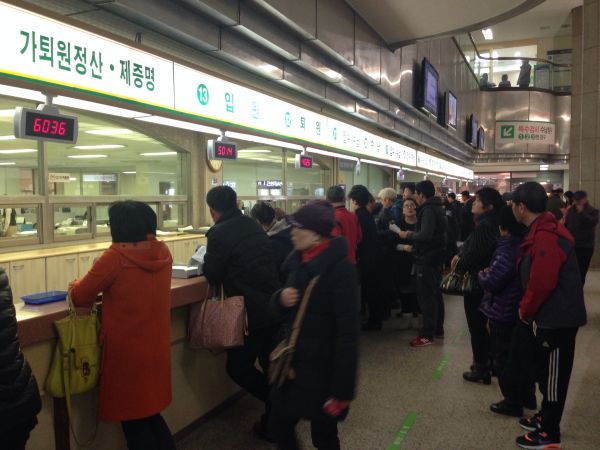충북대병원 서버 복구 이후 수납업무가 재개되면서 이용객들이 몰리고 있다