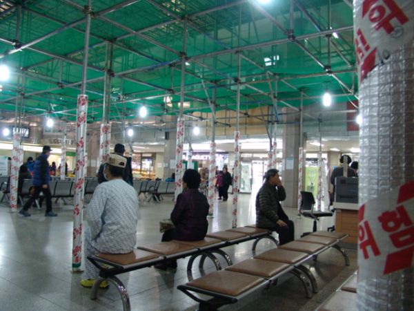 충북대병원 연봉흠 홍보담당은 “공사로 인해 당분간 외래환자들이 불편하겠지만 천장공사가 마무리되면 자연채광이 실내를 밝혀 쾌적한 환경으로 거듭 난다 ”며 “기둥마다 충격흡수재와 주의표시를 하고 천장에 그물망을 설치해 안전사고에 예방에 최선을 다하고 있다”고 말했다. <조석준>