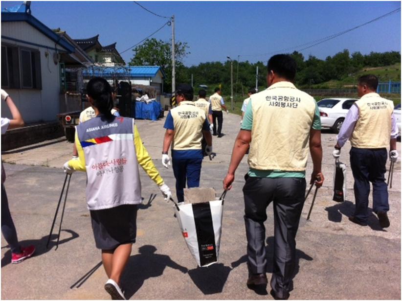 이들은 환경 정화 활동의 일환으로 한국공항공사 청주지사와 함께 ‘청주공항 사회공헌 연합봉사단’을 만들어 인근 마을 등지에서 주변 환경 청소와 캠페인 등을 통해 주민들의 높은 호응을 얻고 있다.