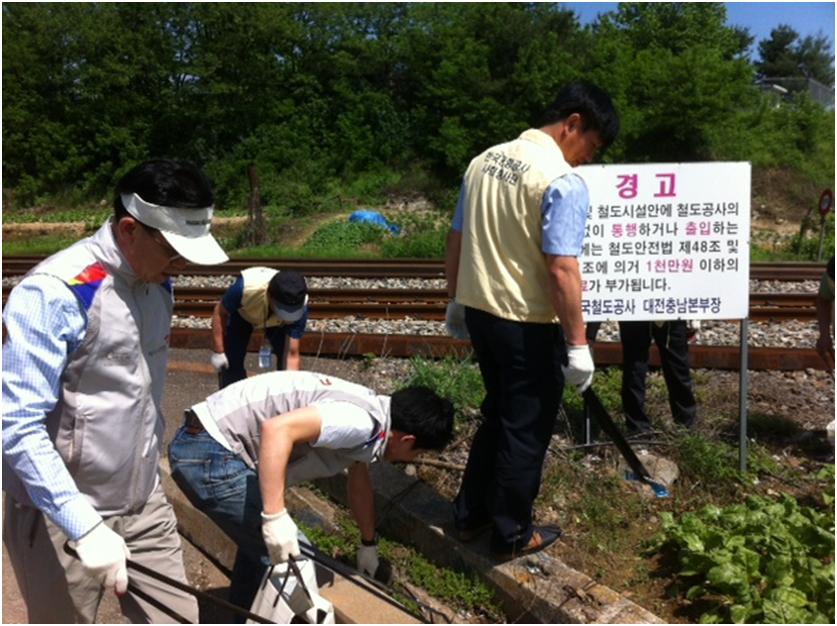 5. 한국공항공사 직원들과 함께 청주공항주변 환경정화활동을 하고 있다.