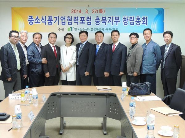 중소식품기업의 자율협력기구 구성을 통한 상호 협력을 목적으로 한 ‘중소식품기업협력포럼’이 지난 1월 설립된 데 이어 중소식품기업협력포럼 충북지부가 27일 aT한국농수산식품유통공사 충북지사에서 창립총회를 개최하고, 상생을 위한 도약을 시작했다.