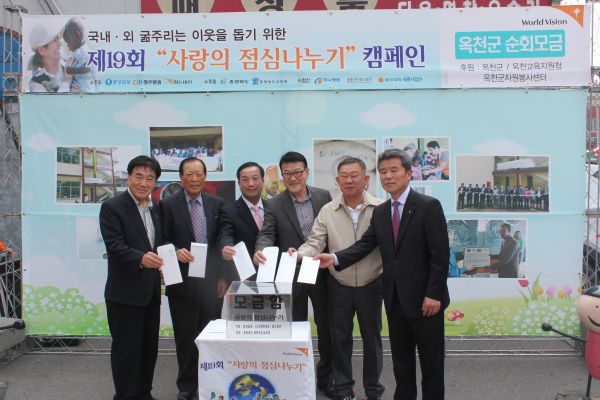 19회 사랑의 점심 나누기 순회 모금행사가 이날 농협중앙회 옥천군지부 앞 광장에서 열렸다.